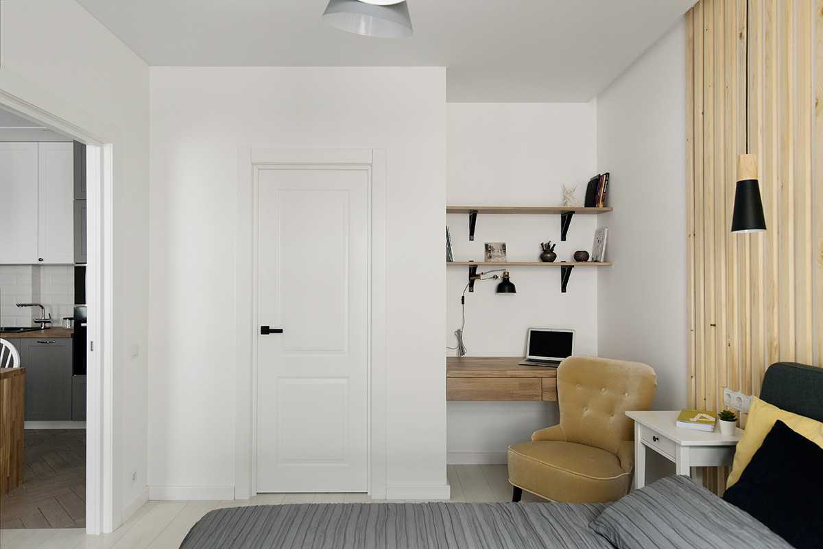 Вот ещё несколько примеров перепланировки однушки в двушку без сноса несущей стены. Архитекторы предлагают возвести перегородку из гипсокартона, но одна комната останется без света, а дополнительный проём в капитальной стене придётся укреплять и согласовывать. Если наличие тёмной комнаты не устраивает, между спальней и гостиной можно смонтировать лёгкую стенку из матового стекла. Ещё один вариант – реечная перегородка, не доходящая до конца стены.