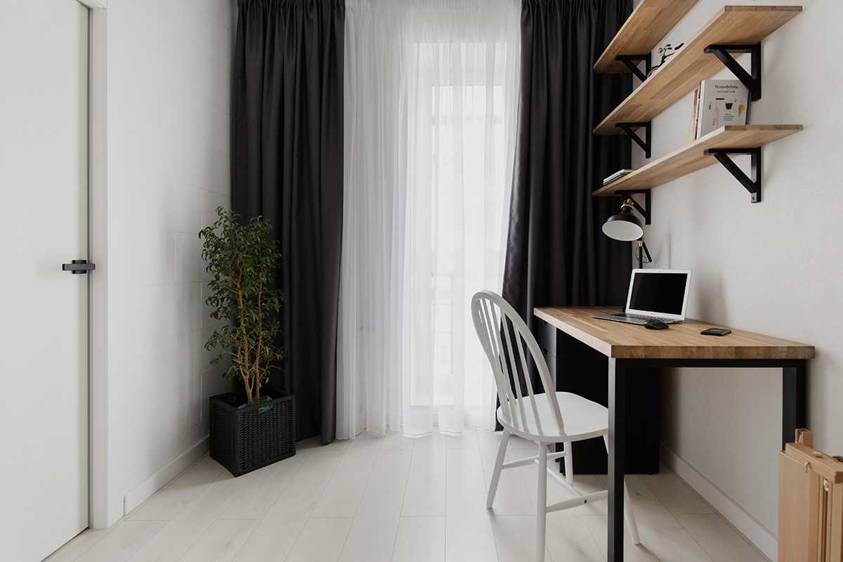 – В кабинете пока организована только рабочая зона, потому что непонятно, как это помещение захотят использовать жильцы: как кабинет или как детскую. Впоследствии здесь появится либо диванчик, либо кровать.