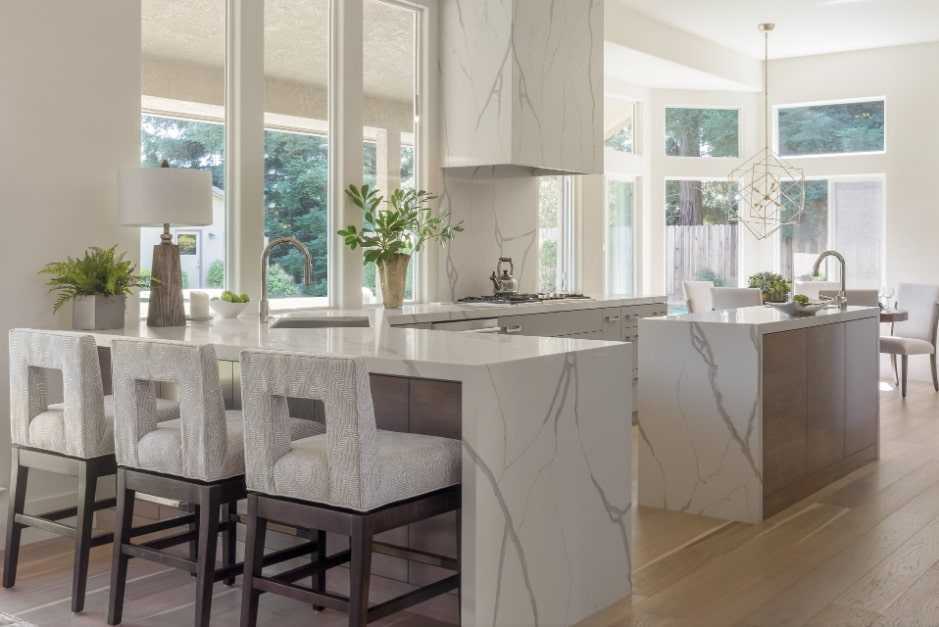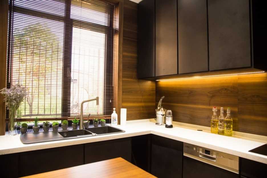 - Помните, что окно должно быть выше уровня столешницы гарнитура или барной стойки примерно на 1,5-2 см или выше.
