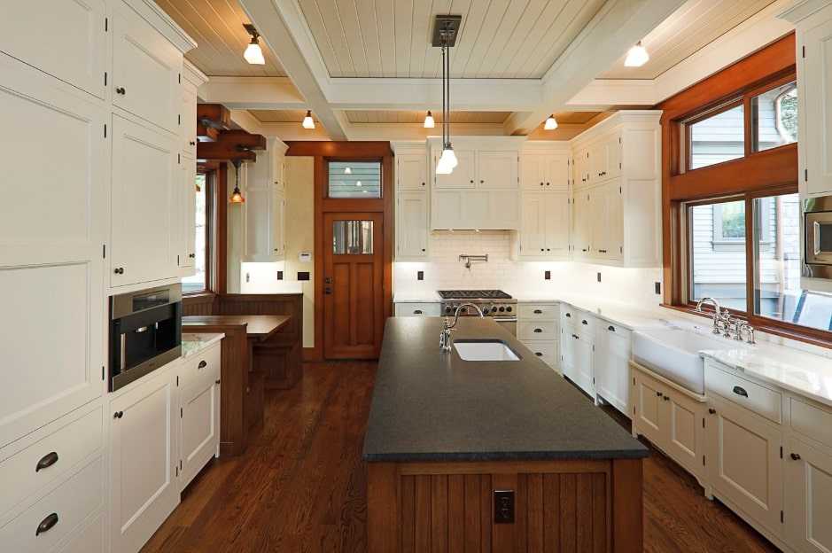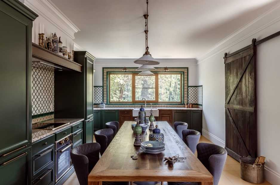 Ну и, напоследок, поговорим о кухнях в частных домах. Предугадать, какие тут могут быть окна — просто невозможно, поэтому, мы вам просто покажем подборку фото, на которых нашли самые интересные дизайны.