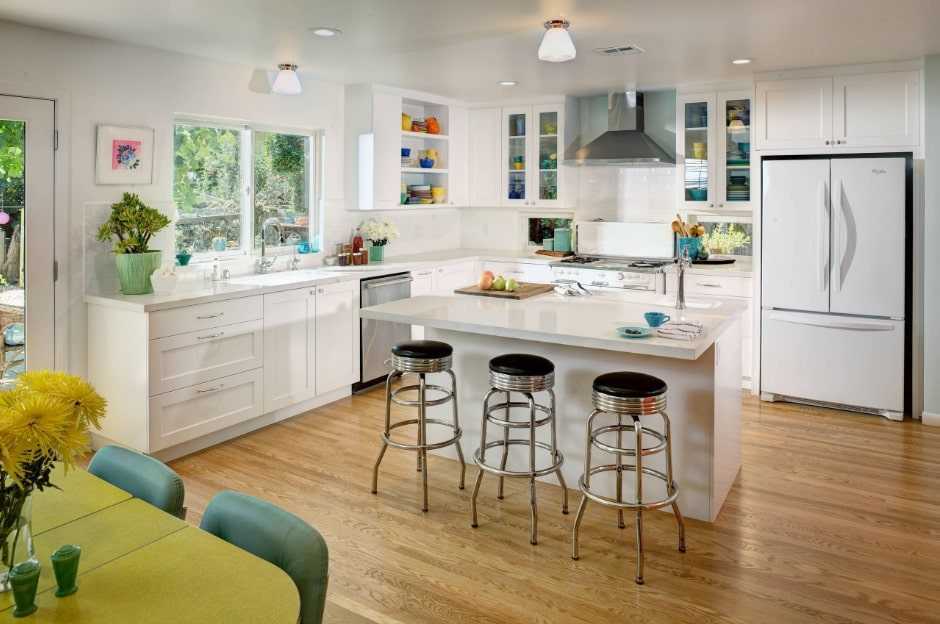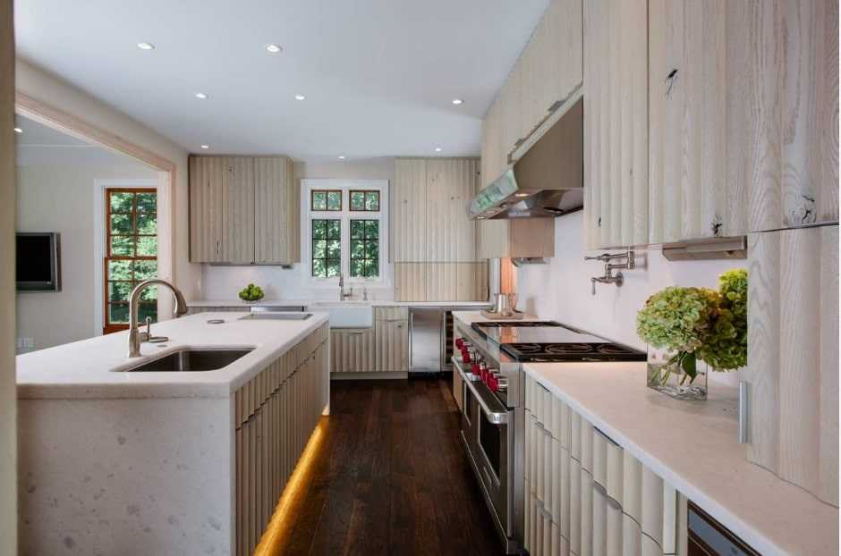 Безусловно, данное решение смотрится максимально привлекательно. Поэтому его все чаще выбирают для обустройства кухни