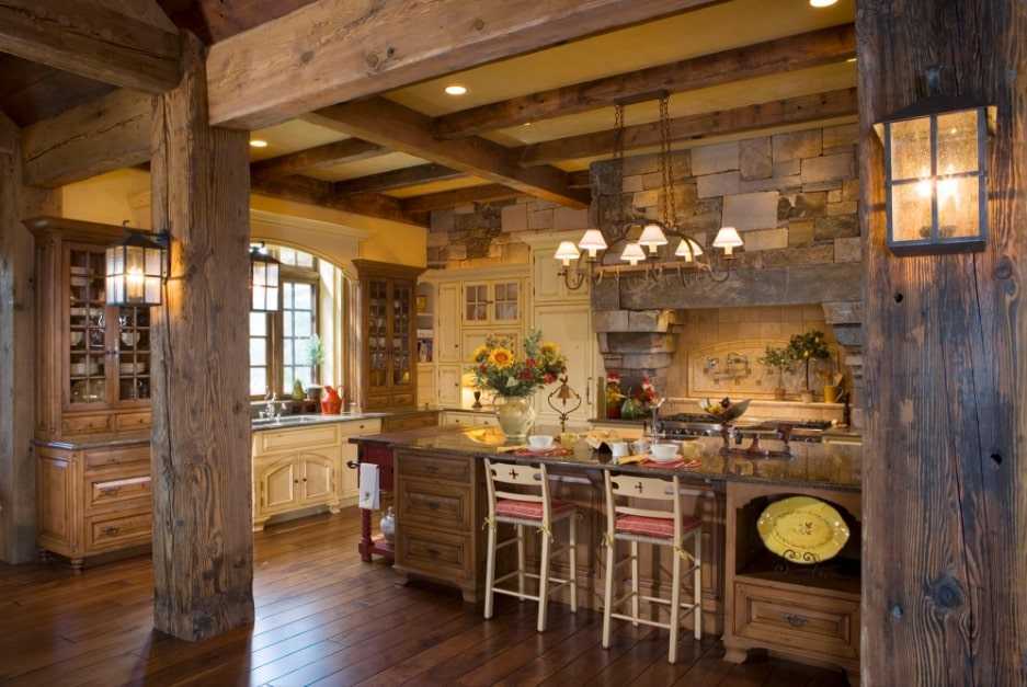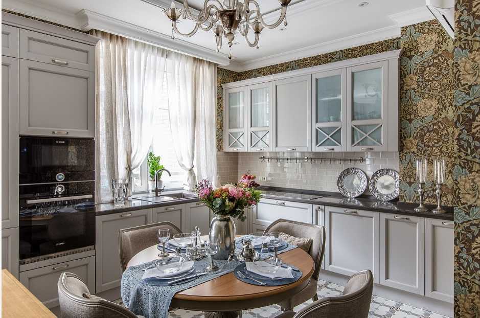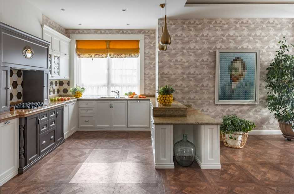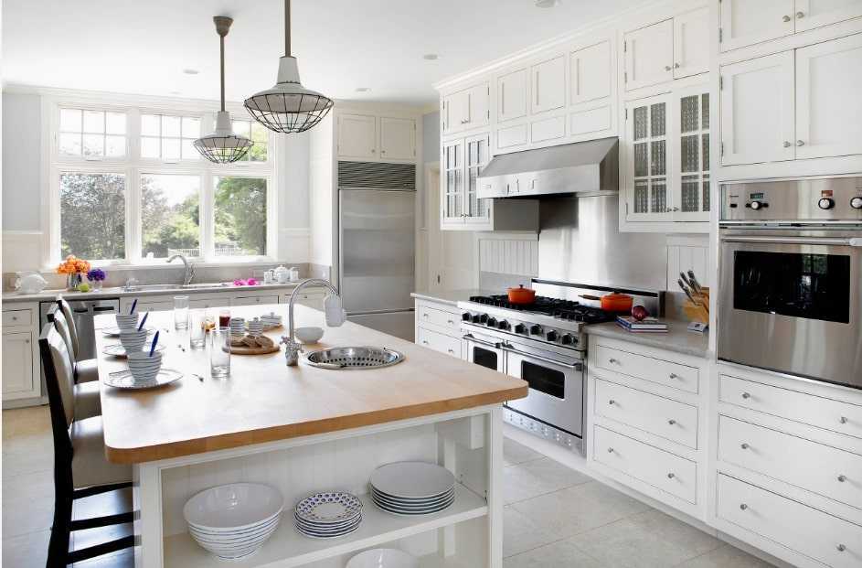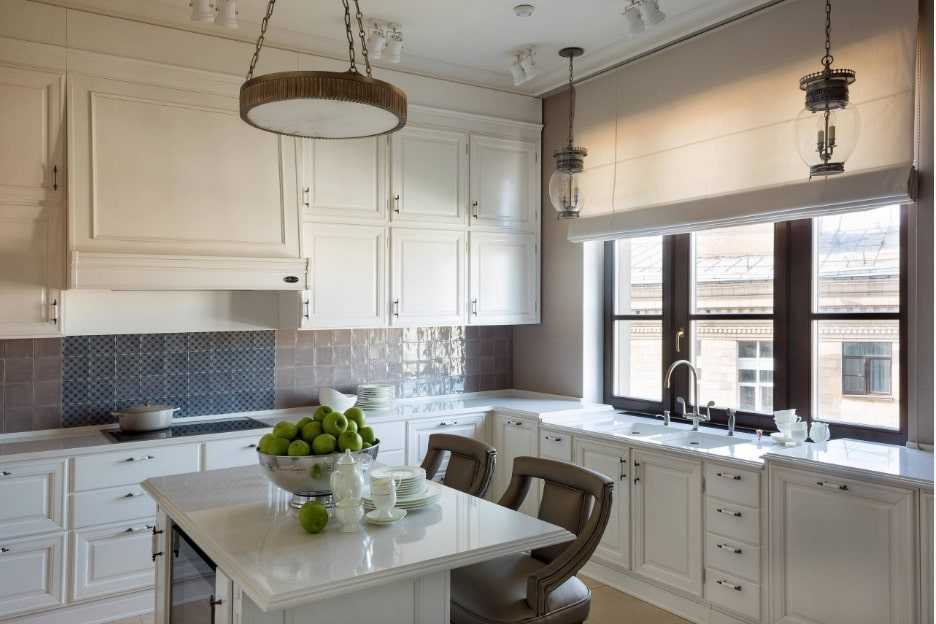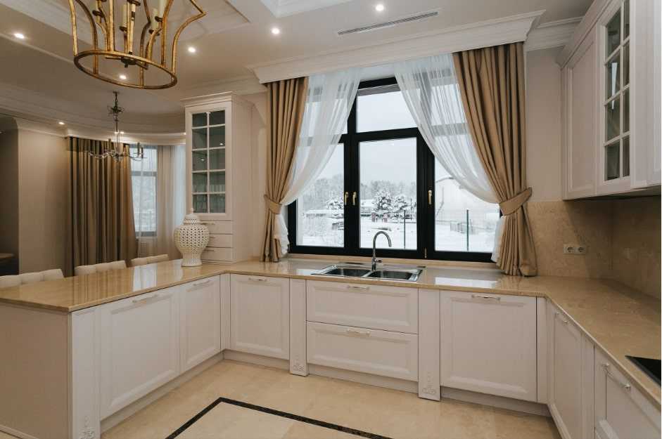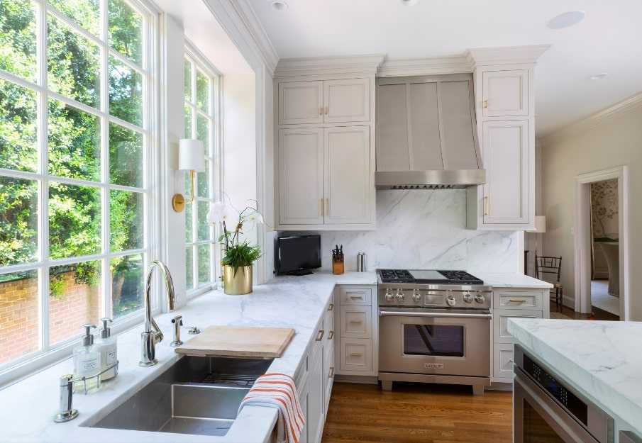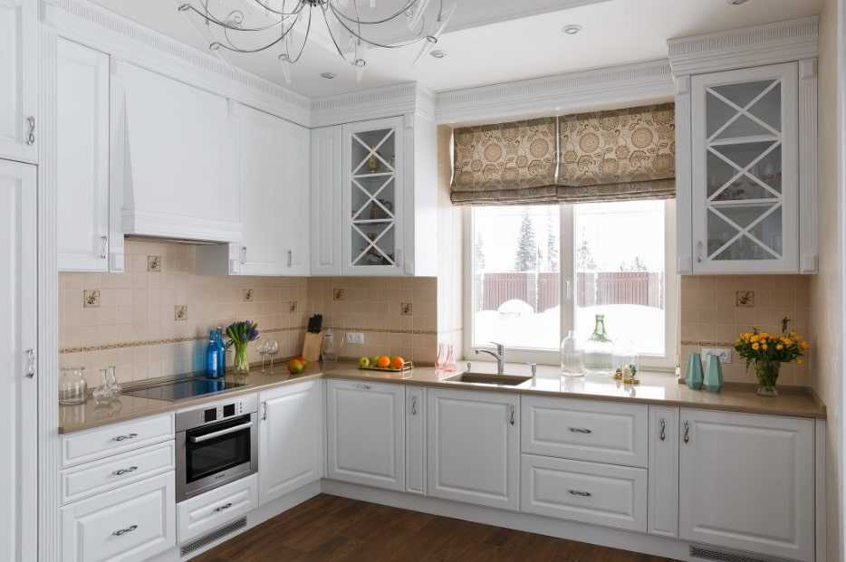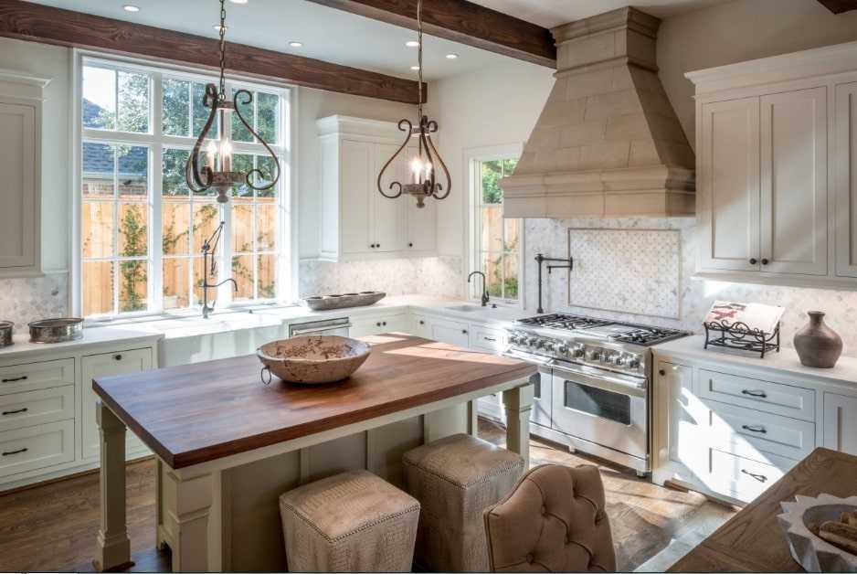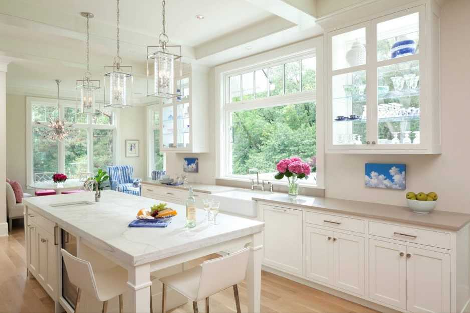 Идея 5 – Дизайн классической кухни Прованс с большим окном
