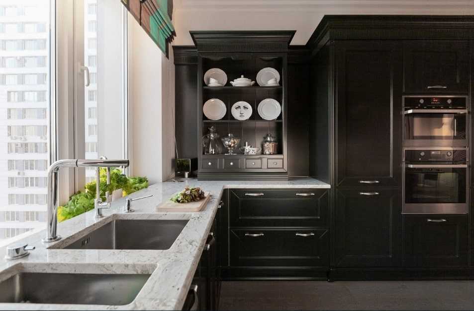 Кухня с мойкой под окном всегда смотрится намного более привлекательно. Тем не менее, данное решение достаточно сложное, требующее больших затрат и немало времени на реализацию. Поэтому рекомендуем все взвесить прежде, чем принять окончательное решение.
