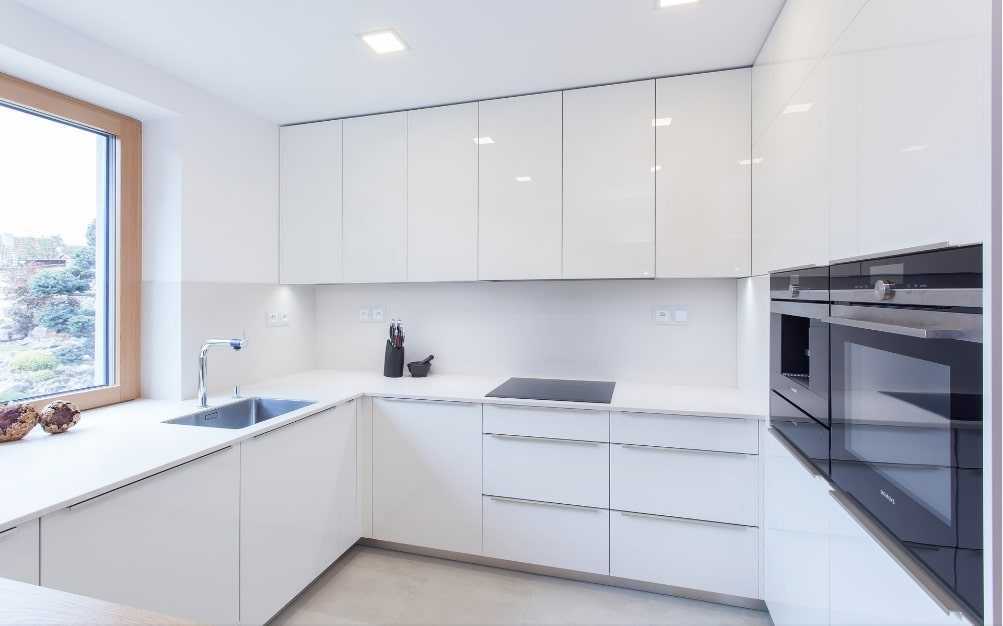 В небольшом помещении все элементы лучше расположить вдоль. Благодаря этому удастся использовать максимум пространства. При установке мойки в подоконнике на кухне удастся увеличить рабочую зону и сделать приготовление пищи более комфортным.