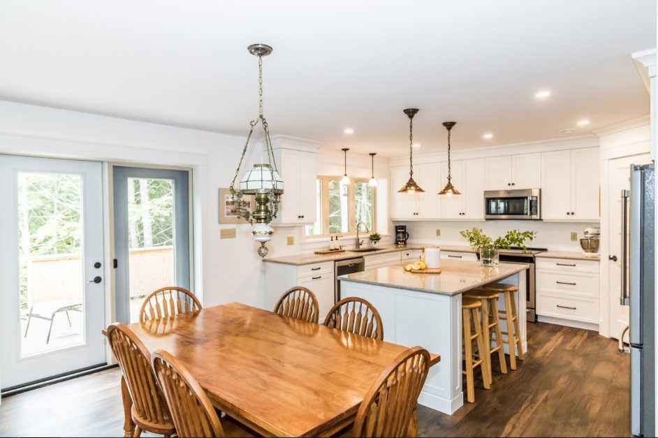 Посмотрите, на фото, как красиво смотрится кухня в гостинке, если убрать эту перегородку и сделать её большой.