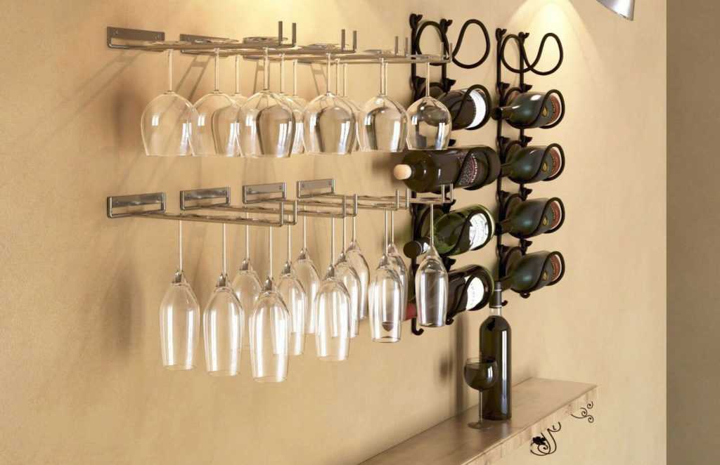 Все эти элементы могут быть скомбинированы в одной конструкции, например, держатель для бутылок с держателем для бокалов или скажем, держатель для досок с органайзером для ножей.