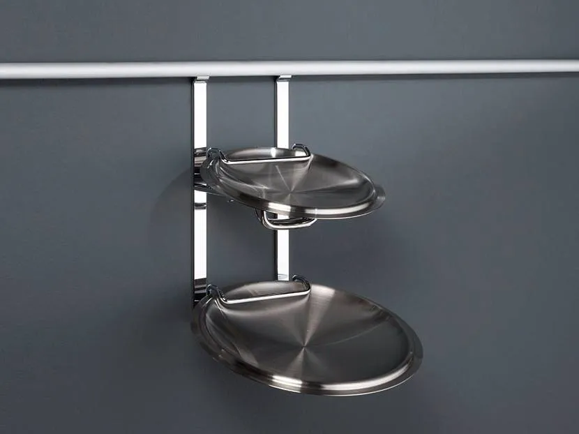В полках-сетках расположенных около мойки найдут свое место моющие и чистящие средства, стекающие после мытья фрукты и пр. Сетчатые полки продаются самых разных конфигураций: прямоугольные, квадратные, в виде сектора, круглые, овальные и пр. Сетки хороши также для хранения лопаток и шумовок около плиты. Именно там происходят процессы помешивания и переворачивания.