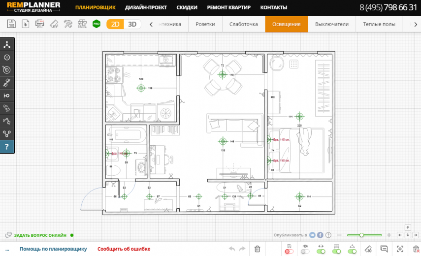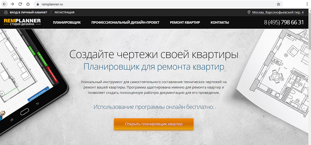 при работе необходима связь с интернет-сетью; нельзя без оплаты загружать более 3 планировок. |