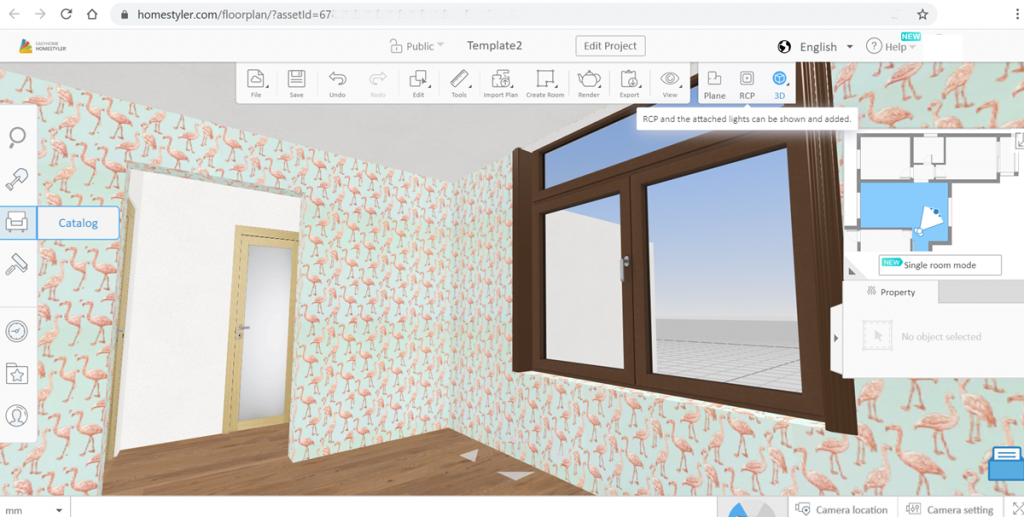 Разработчики говорят, что одна из основных фишек этого сервиса состоит в том, что вся отделка и расстановка мебели происходит в режиме 3D. И это действительно так: абсолютное большинство аналогичных сервисов предлагает сначала поработать в 2D, который затем рендерится в 3D. Соглашусь — работать сразу в 3D гораздо удобнее. Это не только экономит время, но и позволяет сразу посмотреть, удачна ли та или иная иная ваша дизайнерская идея.