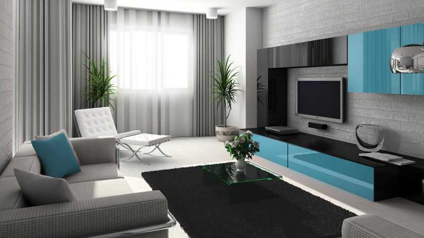 Разные по тональности оттенки серого прекрасно дополнит синий. Эта расцветка поможет придать утонченности и элегантности, а также уюта, вне зависимости от размера помещения. Комбинация этих двух цветов весьма удачна. Будет трудно перегрузить комнату цветом.