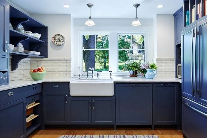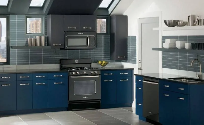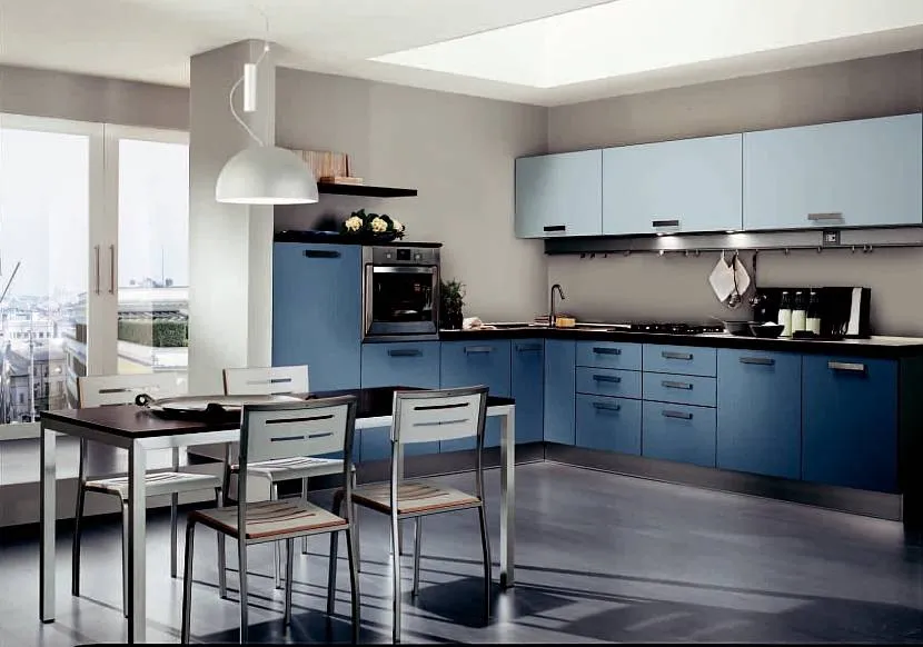 Если приобретается классическая мебель, то фасад в ней лучше сделать темно- или серо-синего оттенка. Современная кухня в этом плане не ограничивается какими-либо рамками.