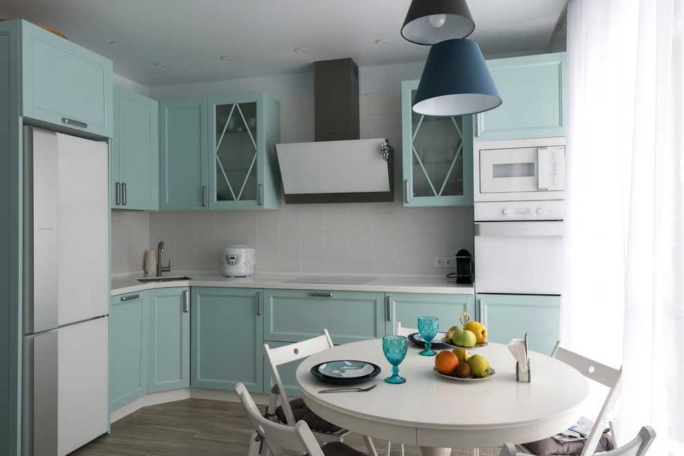 На их фоне синяя кухня будет смотреться уютно и стильно. Светлые стены зрительно увеличивают пространство, делают кухню свежей и легкой. Для помещений побольше используют более смелые цветовые решения. Например, синий цвет отлично смотрится на фоне бирюзового, охры и цвета хаки.