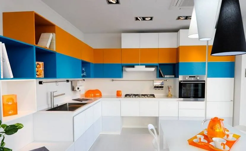 Сочетание синего и оранжевого цветаИсточник rdmkuhni.ru