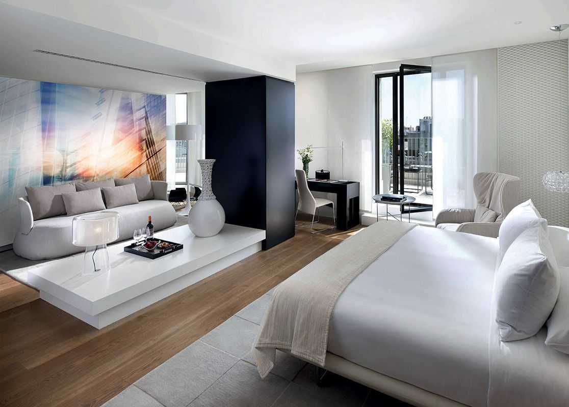 Продумывая интерьер для гостиной и спальни в одной комнате, люди выбирают минималистичный стиль, фото таких комнат наглядно показывают, как будет смотреться такая комната.