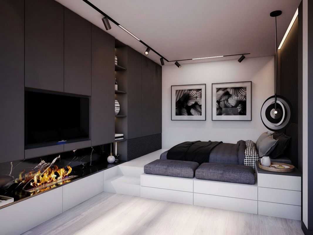 Спальня с гостиной с фальш-каминомИсточник timeszp.com