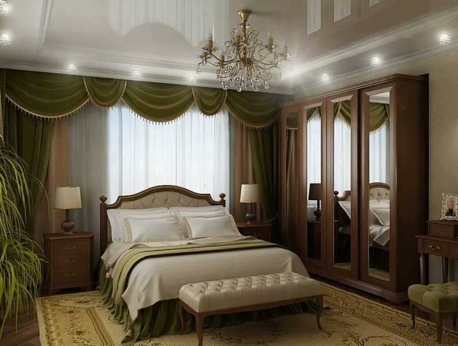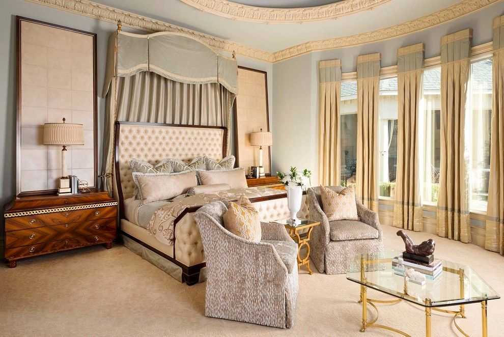 С другой стороны, спальня, стилизованная под классический или неоклассический стиль, будет значительно отличаться от стандартных комнат. В связи с этим комнаты отличаются уникальным расположением, которое проявлялось в богатстве украшений, позолоты, а также в насыщенных цветах. Ранее классицизм удачно сочетался с чертами барокко. В настоящее время классические спальни, вдохновленные временем прошлых лет, чем-то напоминают палаты дворца. Большая кровать в классическом стиле со стеганными изголовьями, люстрами, настенными светильниками, плотными тканями, туалетными столиками, комодами — это лишь некоторые из признаков классицизма в дизайне интерьера.