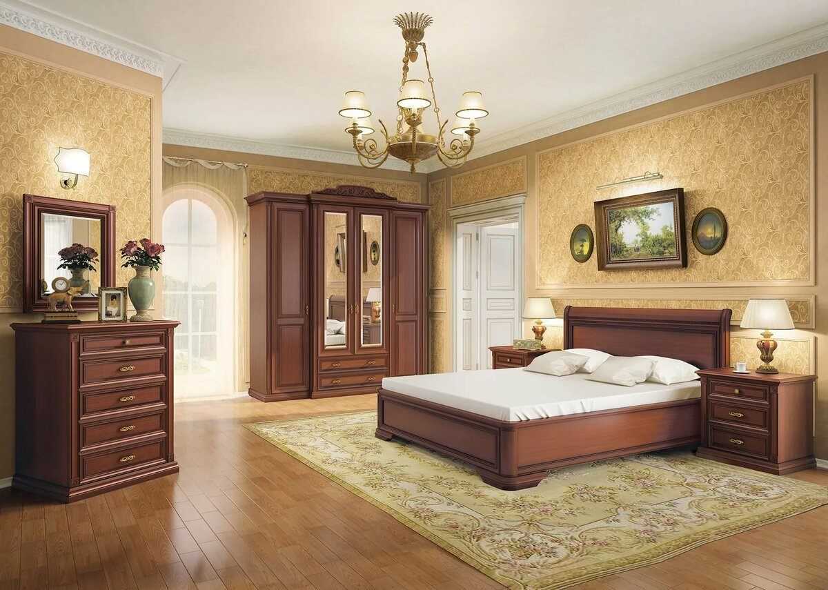 Классическая мебель для спальни не может быть разрозненной. Она обязательно должна представлять собой полноценный гарнитур из множества элементов, идентично оформленных.