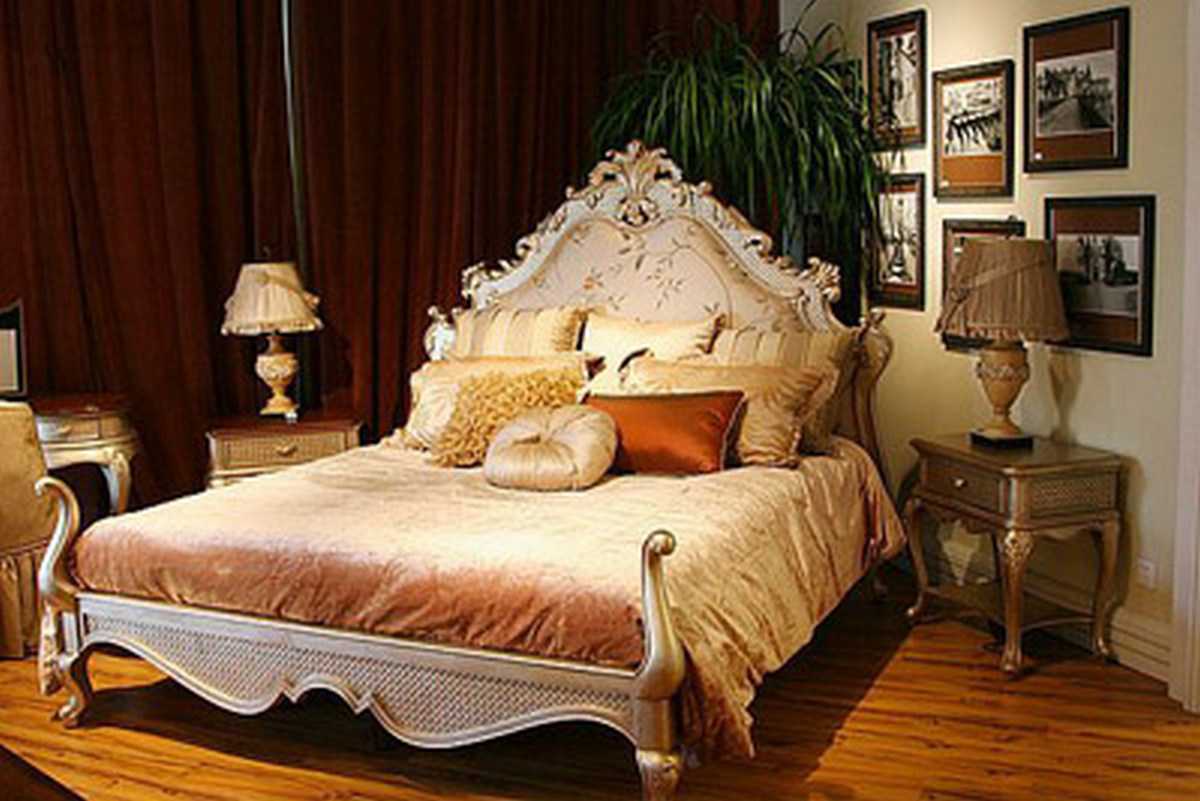 Маленькую спальню лучше просто стилизовать под классику, взяв некоторые основные элементы декора, соблюдая цветовую концепцию и используя в оформлении традиционные аксессуары. Подойдут бронзовые подсвечники, вазочки или антикварные сувениры.
