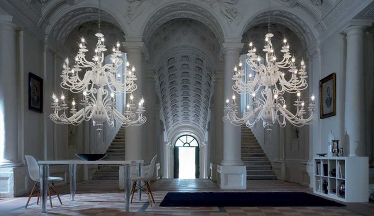 - Люстра должна мощно освещать помещение, сверкать и рассеивать мрак. Точечную подсветку в классическом стиле практически не используют.
