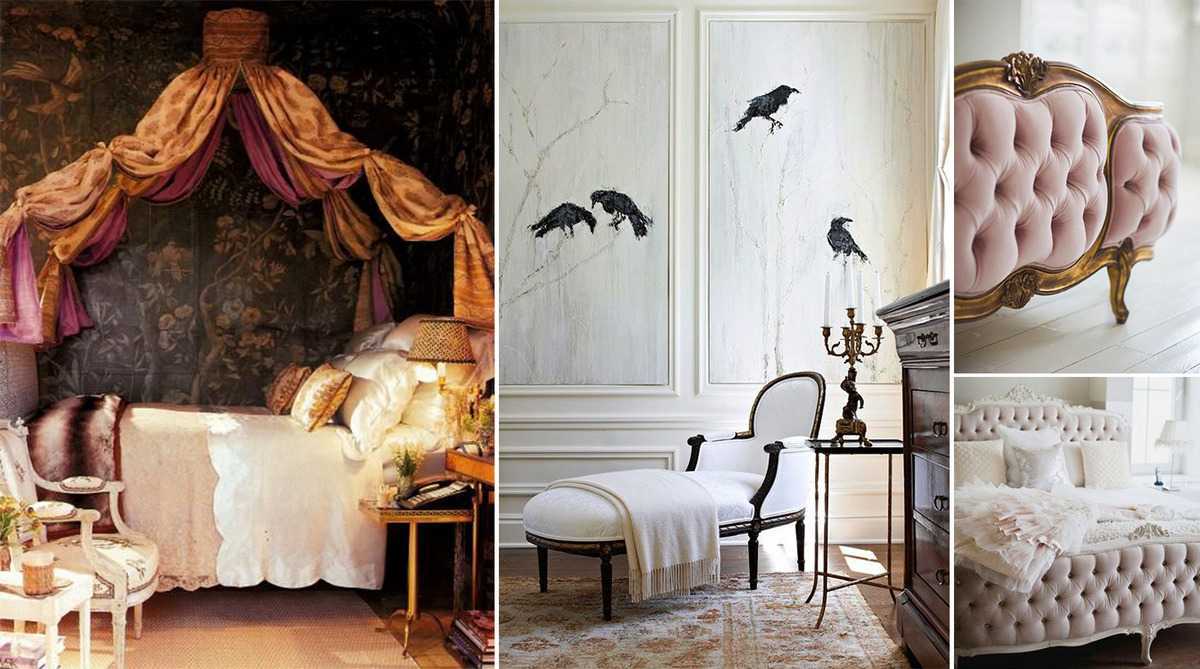 Оптимальный вариант – применение светлых оттенков дерева и декор, выполненный с применением искусственного старения. Узоры, с применением позолоты, немного приглушенная световая гамма, массивные, тяжелые бархатные шторы – все это создает впечатление загадочности.