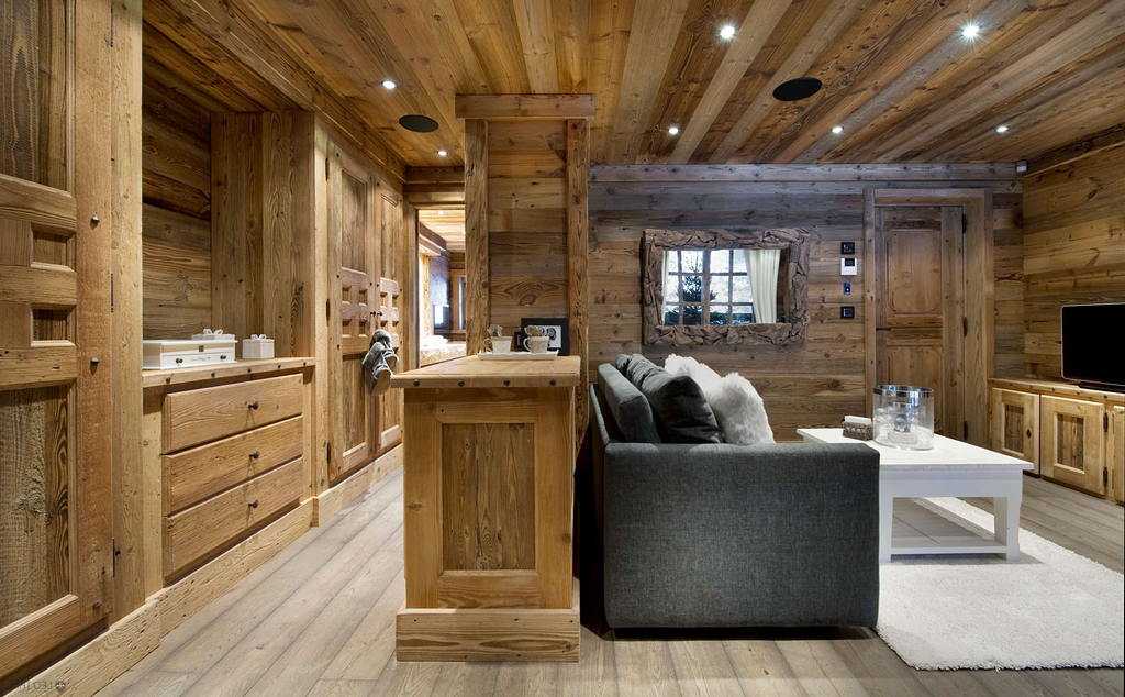 Внутренняя отделка изобилует фактурой дерева. Толику разнообразия иногда вносит структурная штукатурка или побелка.