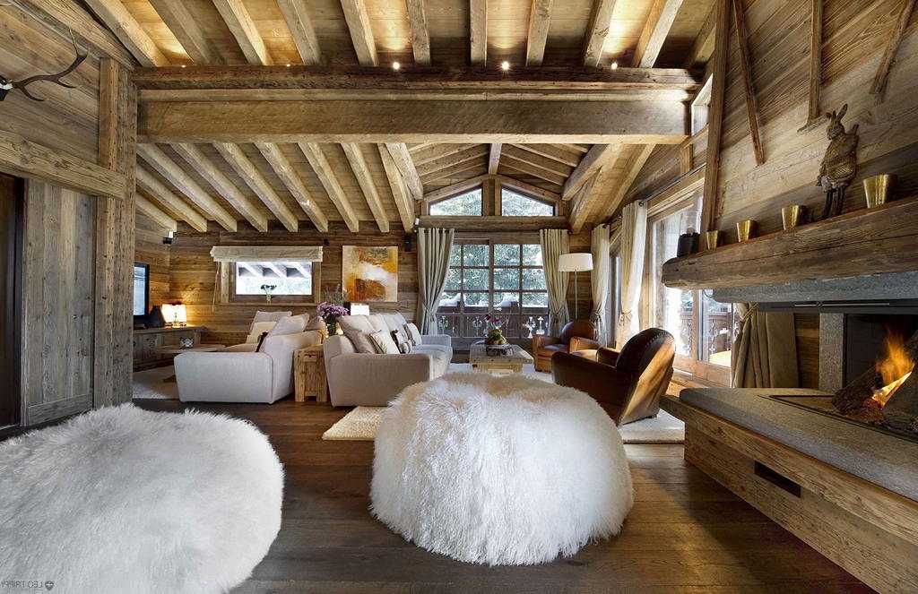 Как вы видите, большинство шале имеет множество натуральных материалов, таких как дерево и камень, а также кожу в составе мебели, а затем мех и шерсть в аксессуарах.