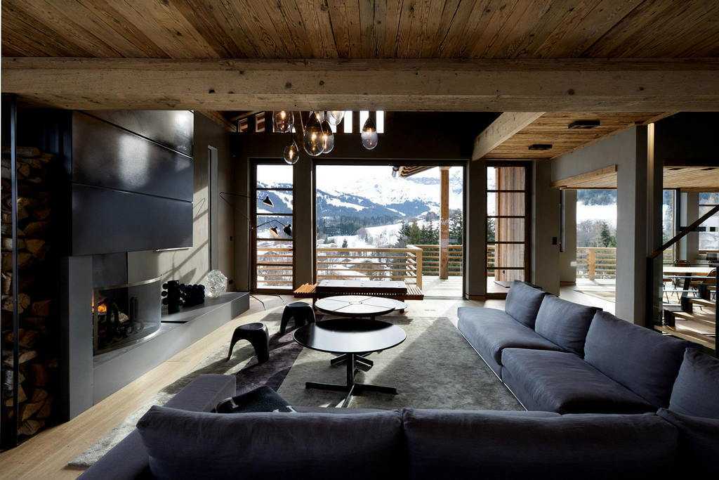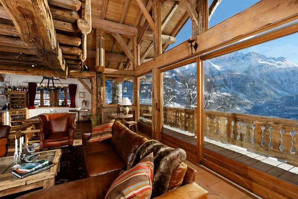 Как вариация в стиле шале, в качестве гостиной может использоваться застекленная веранда или огромный балкон. В этом случае домочадцы и гости могут свободно наслаждаться местными пейзажами потрясающей красоты.