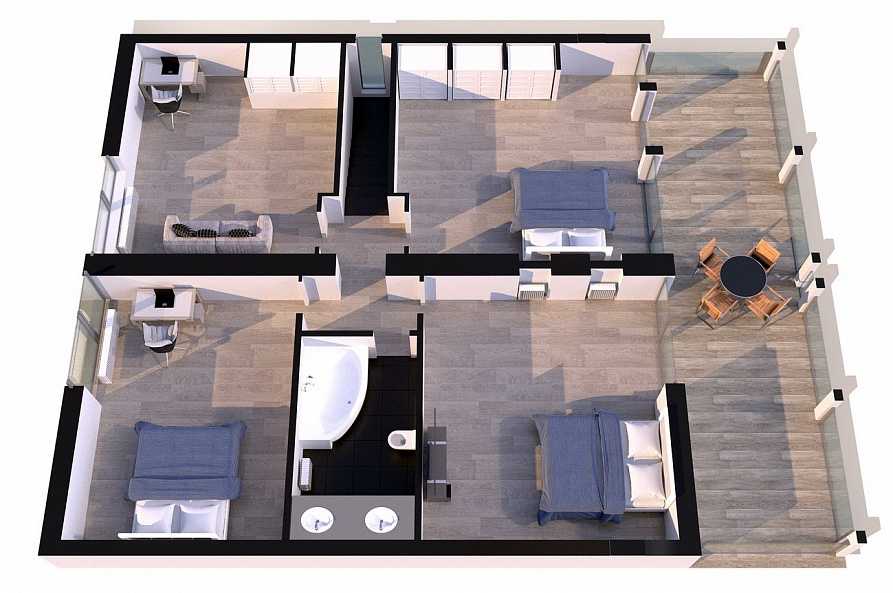 - Гардеробная. Если вы на стадии разработки проекта, то заложите небольшое помещение под гардеробную. Например, у компании Икеа в ассортименте есть масса удобных многофункциональных мебельных систем, которые позволят рассортировать одежду и обувь.