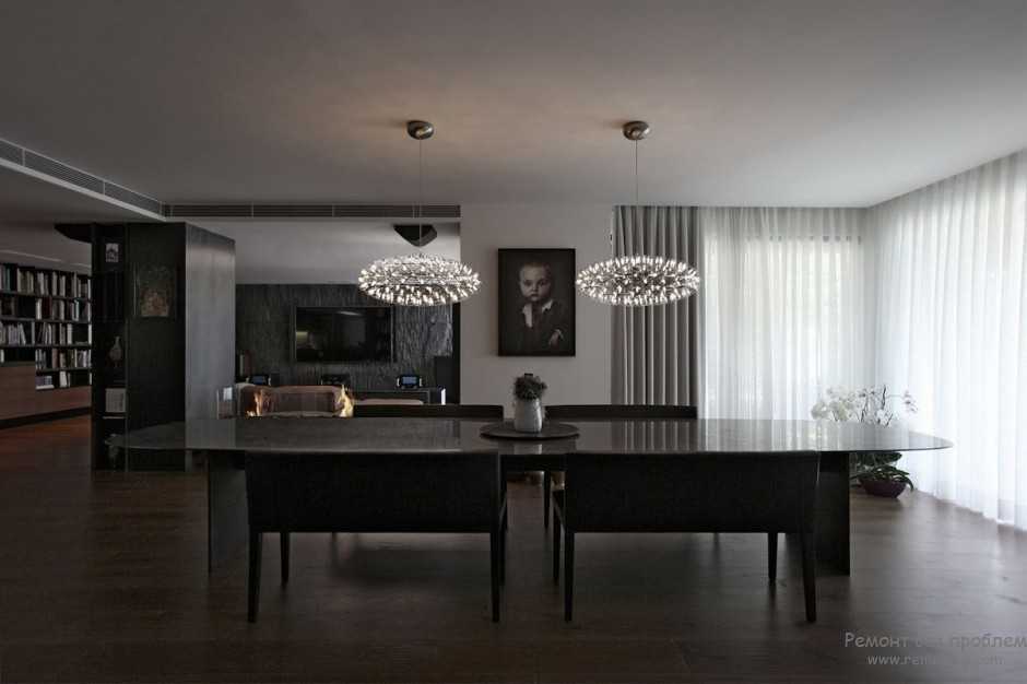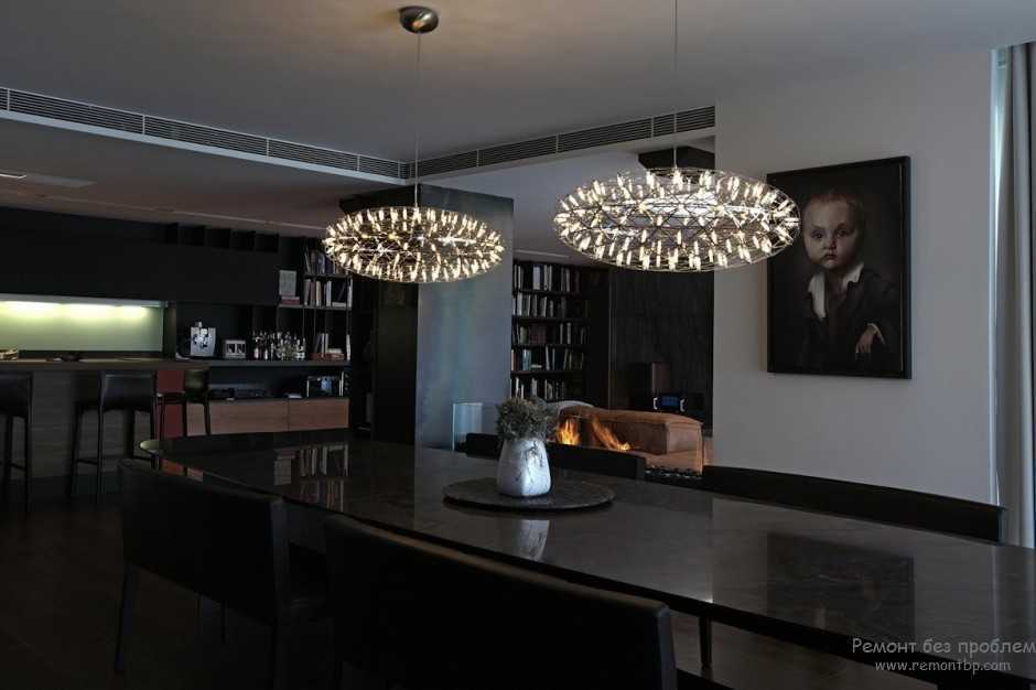 Эффектно смотрится сочетание нескольких предметов данного вида в темном интерьере. Главное, чтобы они гармонировали с окружающей обстановкой, а также сочетались между собой.