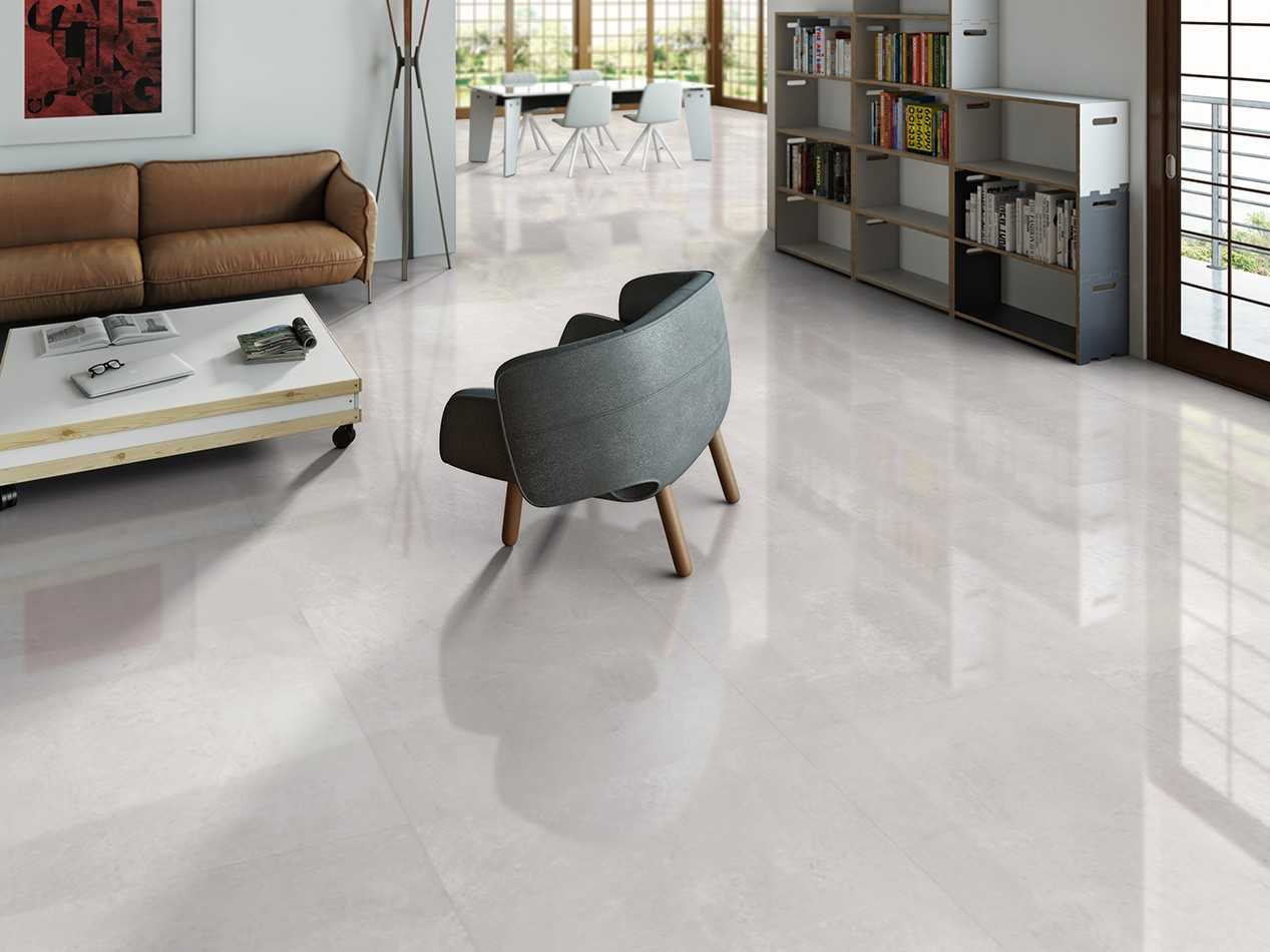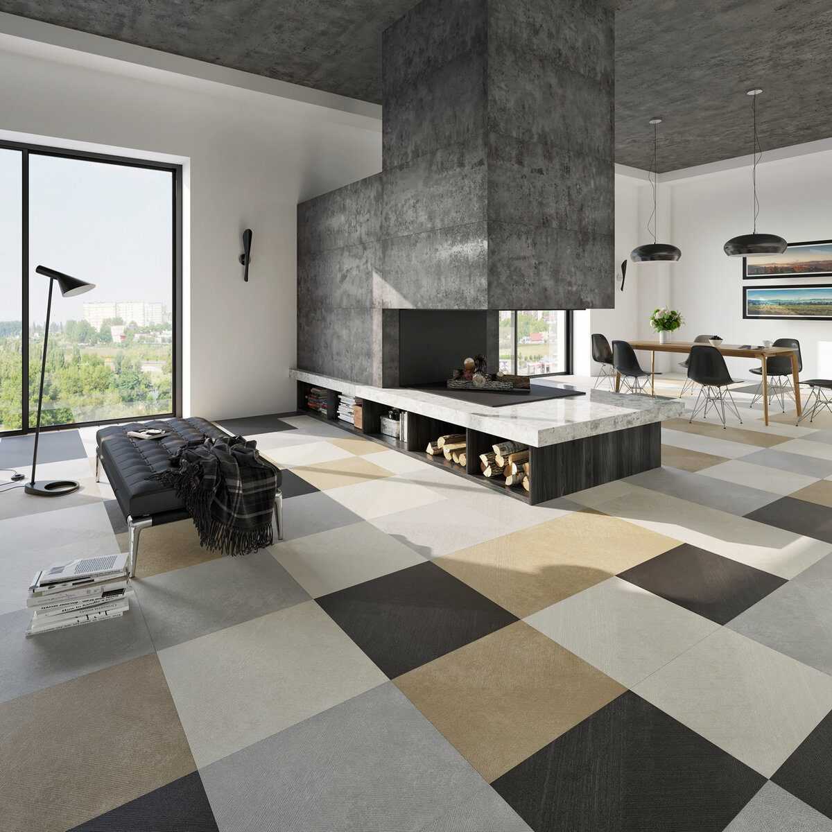 Плитка предлагается в огромном диапазоне цветов. Вы можете использовать привлекательный дизайн, который трудно найти на деревянных полах или ламинате. Плитка может быть использована для создания равномерного, элегантного пола. Особенно, когда выбираете большие однотонные варианты, например, 60 × 60 см или даже 75 × 75 см. Однородную поверхность, например, имитирующую бетон, легче всего получить с использованием выпрямленных плиток (края обрезаются под прямым углом). Современные бетонные плитки имеют размер 75 × 75 см, что позволяет им создавать практически равномерный пол.