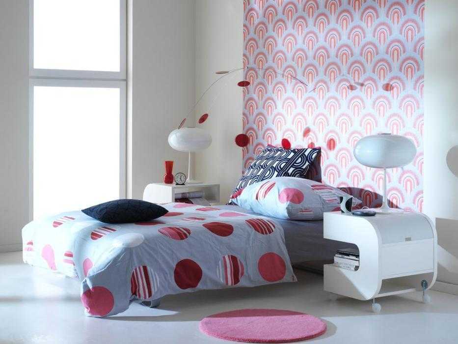 Если окна выходят на юг, то можно выбирать полотнища притемненных, холодных оттенков, а если на северную- то берите белые, но не больничных, а сливочных тонов с яркими узорами. После монтажа фотопечати старайтесь не загромождать стену, не ставить высокие стеллажи или вешать полки. По традиции активная стена располагается либо за изголовьем кровати, либо напротив ее. На остальные стены наклейте контрастные обои или однотонные.