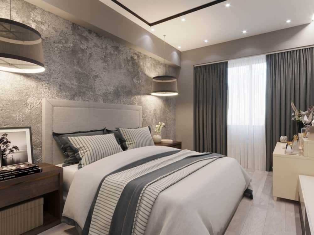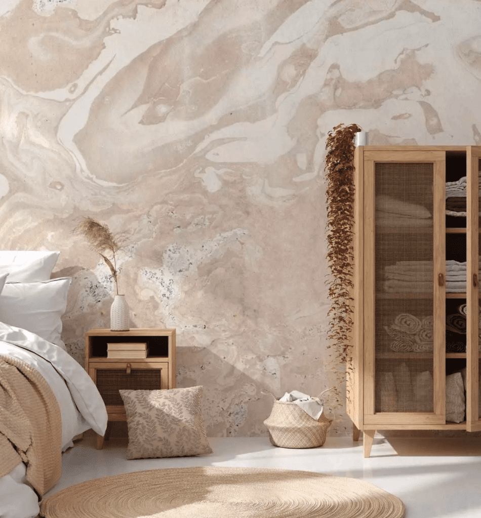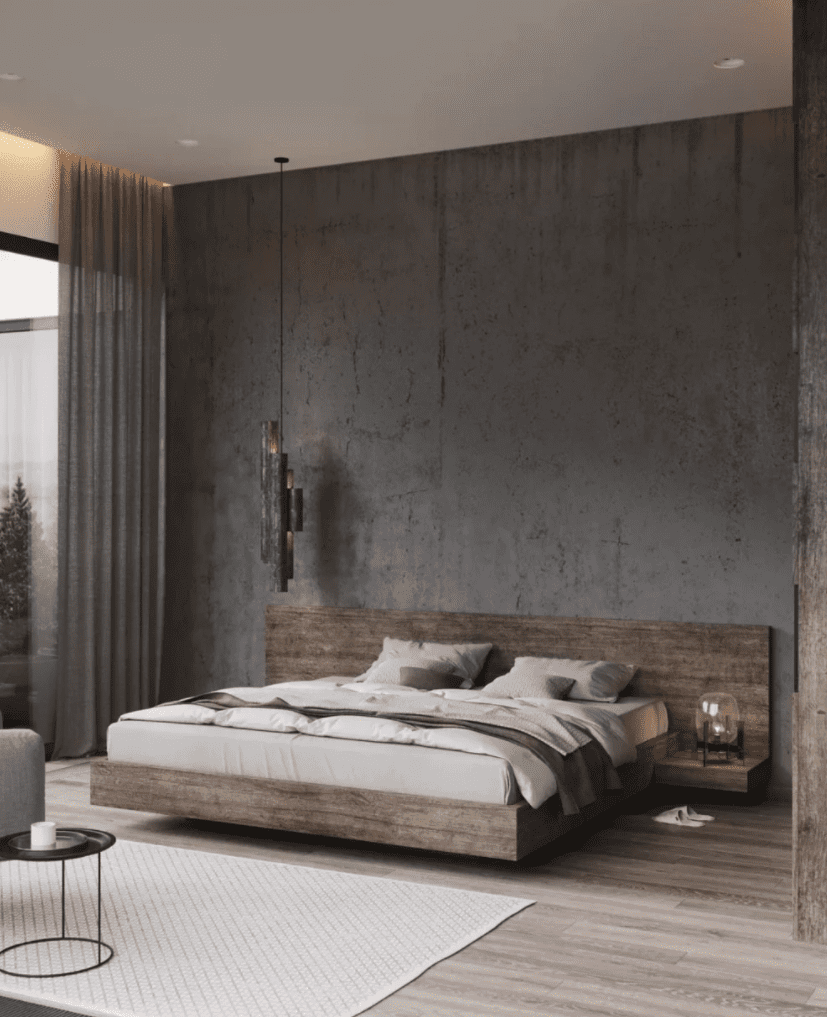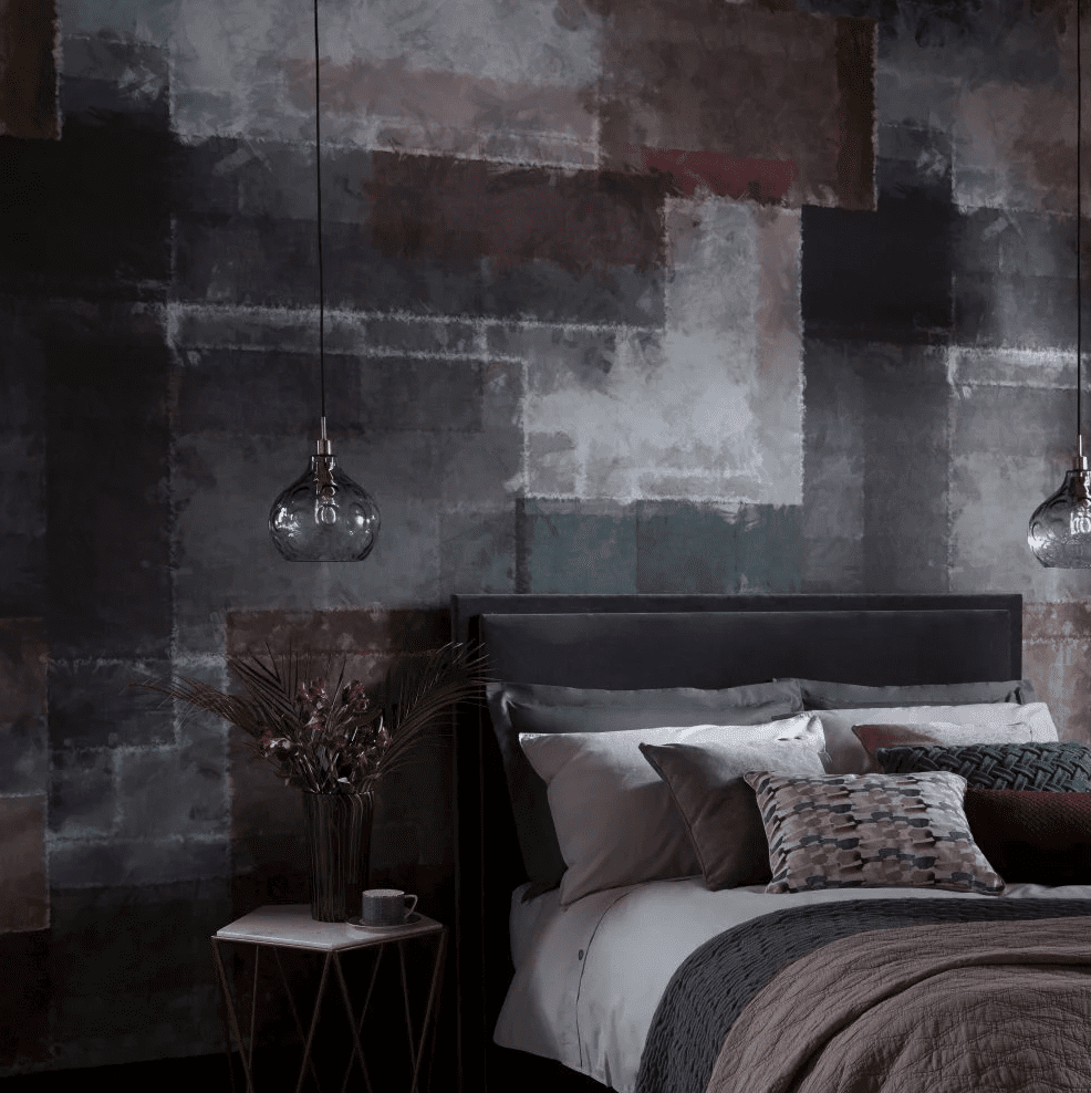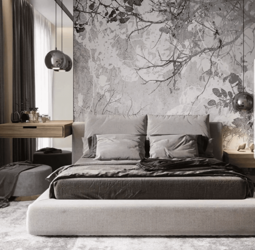 Камень и бетон — материалы, которые символизируют городские пейзажи. В 2022 году эта тенденция проявилась и в виде узора на обоях для спальни. Возможно, вам не захочется отдыхать в помещении, напоминающем собой промышленное здание. Но если использовать текстуру камня как акцент, вполне можно добиться оживления интерьера и идеального фона. В этом случае спальня обретёт новый статус и уравновешенность.