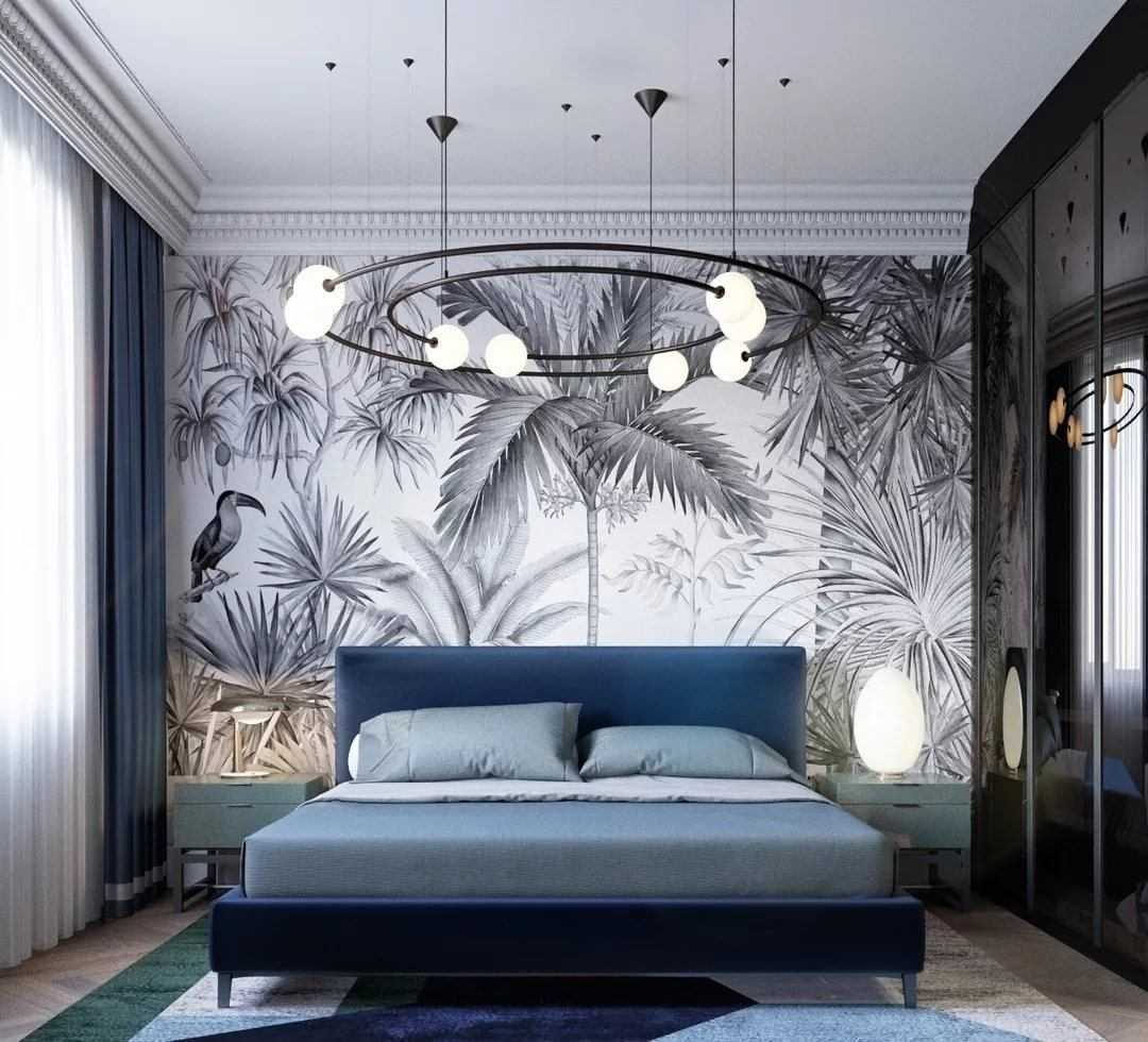 Если вам не хватает дикой природы в вашей местности, это можно компенсировать модными обоями для стен в спальне. В 2022 году выбираем обои с тропическими мотивами. Можно обустроить уголок для отдыха, который будет вам напоминать дикий лес с мягким воздухом и приятной атмосферой.