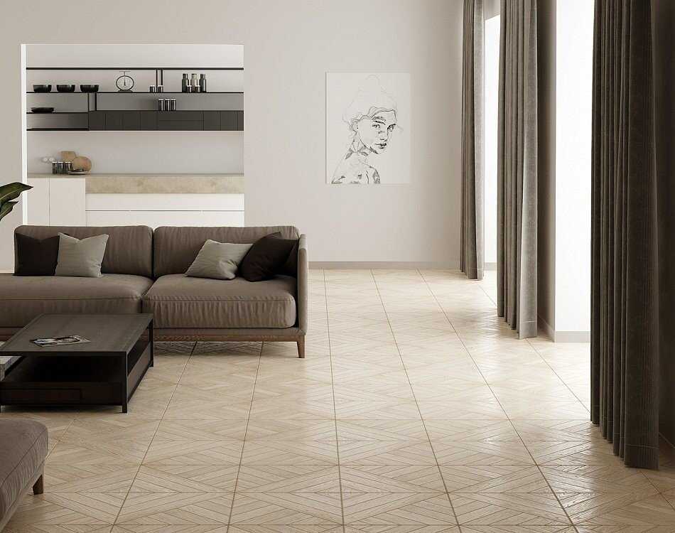 Плитка под дерево прекрасно подходит как для гостиной, так и для кухни. Керамическая плитка является идеальной идеей для людей, которые любят дерево на полу, но хотят избежать необходимости его ухода, чистки, лакирования. Плитка может выглядеть как разные типы досок, но ее гораздо легче поддерживать в порядке. Платины, выложенные в классическом стиле, напоминает деревянный паркетный пол.