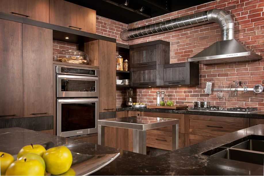 Шикарная фишка, которая украсит любой дизайн кухни 2022, — обустройство «острова» под промышленное оборудование. Внешне он выглядит, совершенно как станок. Соответствующей должна быть и отделка с преобладанием металла.