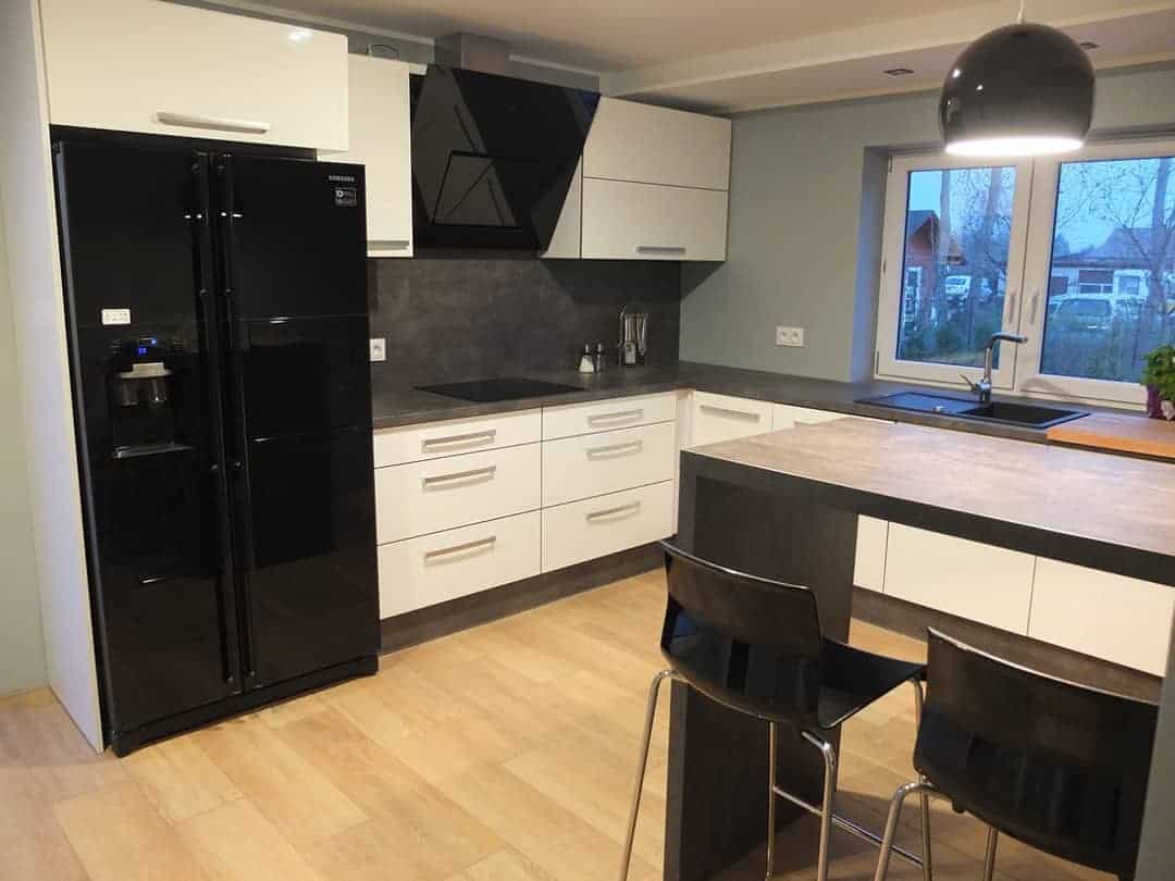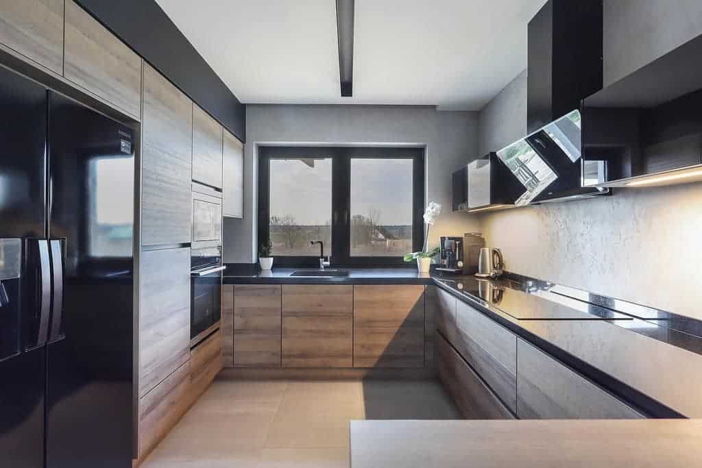 Также модно размещать бытовую технику на уровне глаз. Какую кухонную технику выбрать в 2020 году? Прежде всего, с простой формой, темными цветами и ненавязчивыми декоративными элементами. В случае кухонной компоновки 2020 с полной стенкой шкафов, без углубления под раковину, они обычно располагаются в центральном месте непосредственно за кухонным островком. В ситуации, когда на кухне запланировано углубление, приборы размещаются сбоку, справа или слева. Минималисты и любители порядка могут спрятать кухонную технику, такую как холодильник или духовку, в шкафу за дверью или в мебельной стойке, закрытой раздвижной дверью.