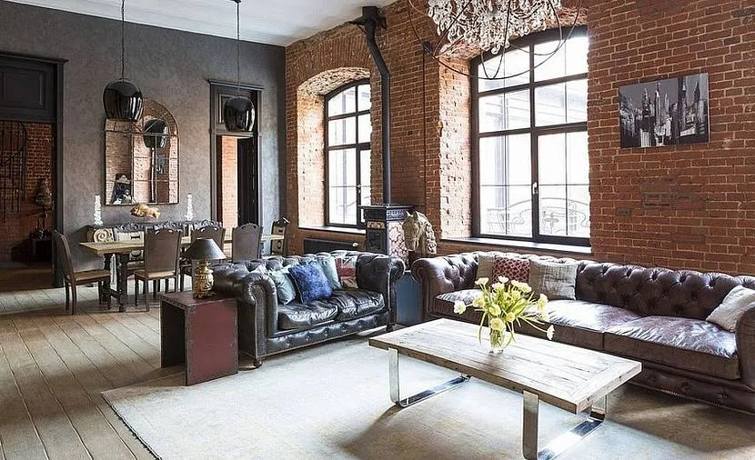 Тренды в дизайне интерьера предпочитают простоту и функциональность. Брутальность городского стиля смягчает минимализм. На нейтральном фоне не так грубо смотрятся трубы, потолочные перекрытия и кирпичная кладка. Модульная мебель станет гармоничным продолжением оформления.