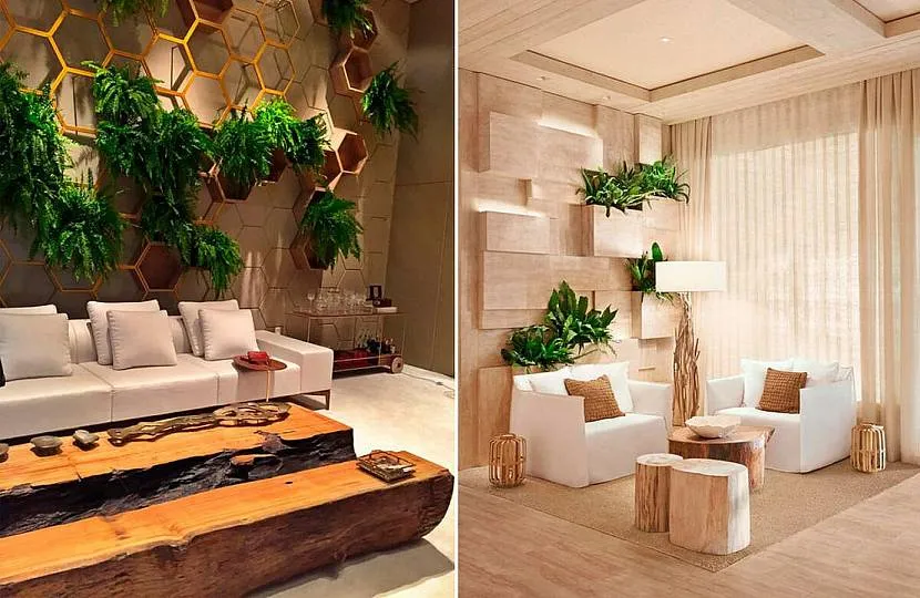 Лаконичный природный дизайн принесет гармонию жителям больших городов. Сдержанное направление легко узнать по натуральным материалам в отделке и необычным формам. Декор часто совмещает функции системой хранения, светильником или мебелью. В интерьере гармонично сочетаются растения, бытовая техника и обилие древесины.