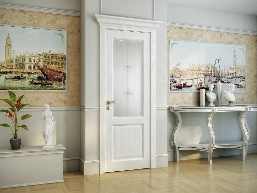 Декоративная отделка белых межкомнатных дверей в интерьере