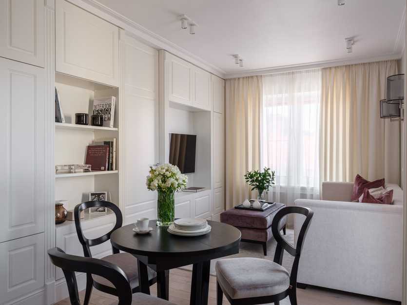 Зрительное увеличение пространства. Любые светлые оттенки, использующиеся в оформлении интерьера, способны наполнить жилое пространство светом и добавить ощущения просторности. Из-за отсутствия четкого разделения стены дверными полотнами, она будет казаться длиннее, а комната – шире.