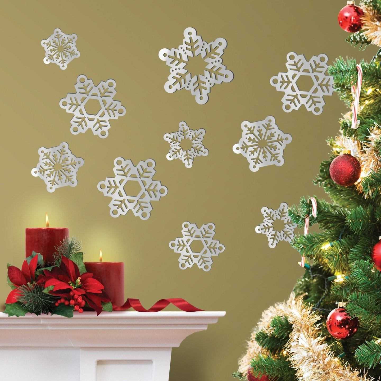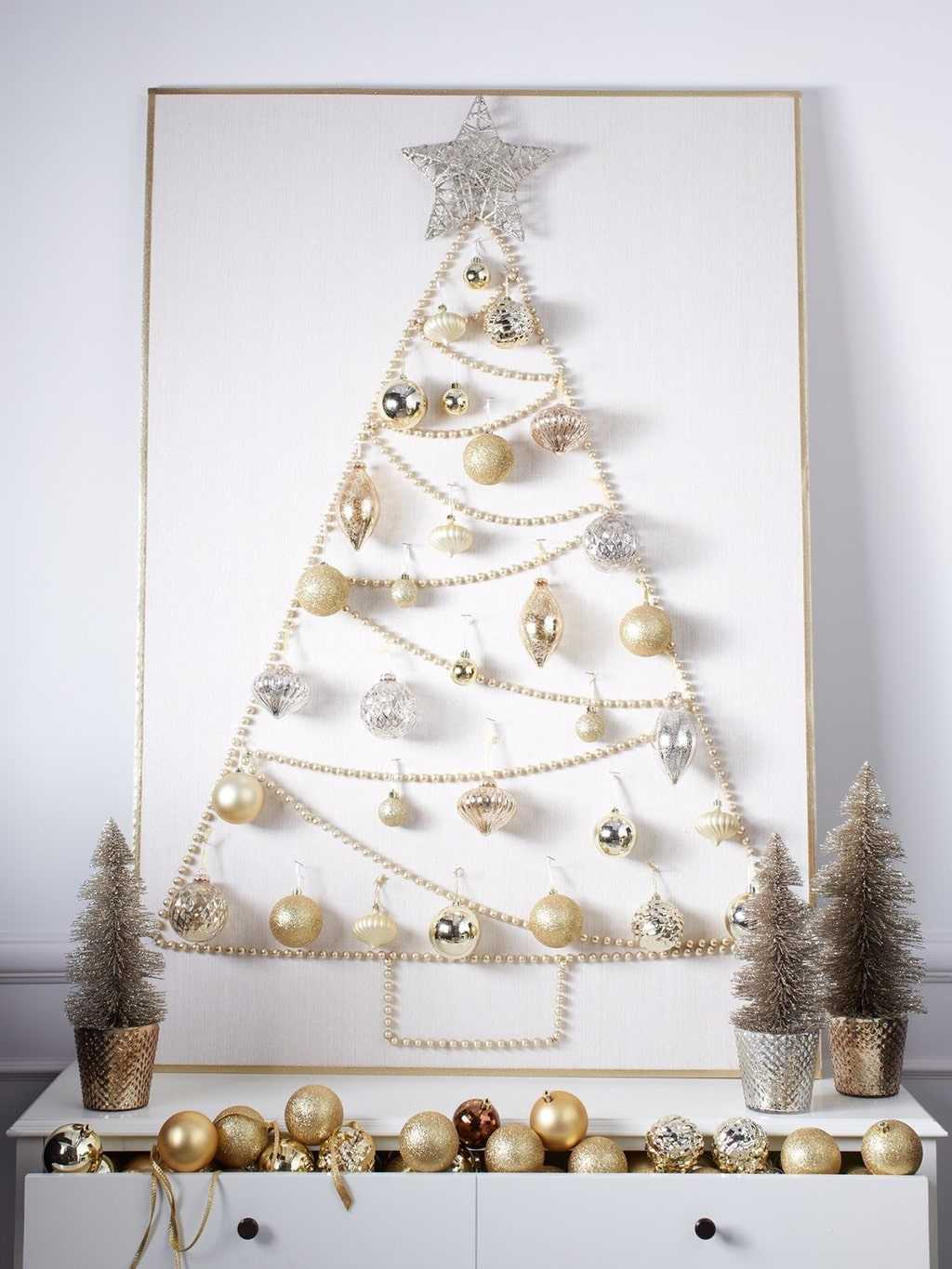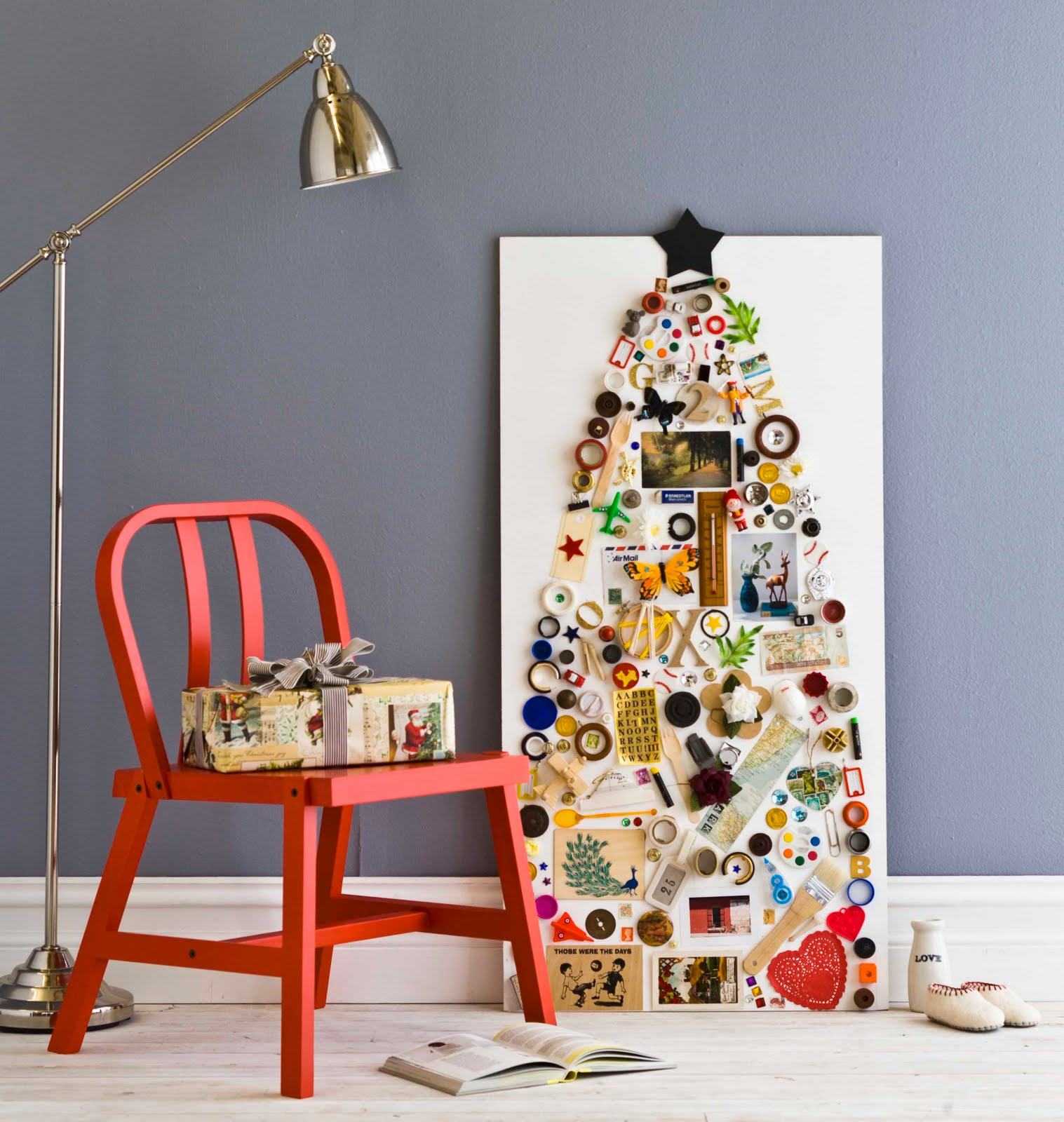 Что касается стен и потолка, то их оформление не должно быть слишком активным. Впрочем, если вы не планируете устанавливать елку, можно сделать ее на одной из стен. Она может выглядеть совершенно по-разному, в зависимости от выбранных материалов. В основном елку делают из деревянных палок, веток, мишуры и даже бумаги. Каждый вариант смотрится по-своему интересно, поэтому выбирайте тот, что вам по душе.