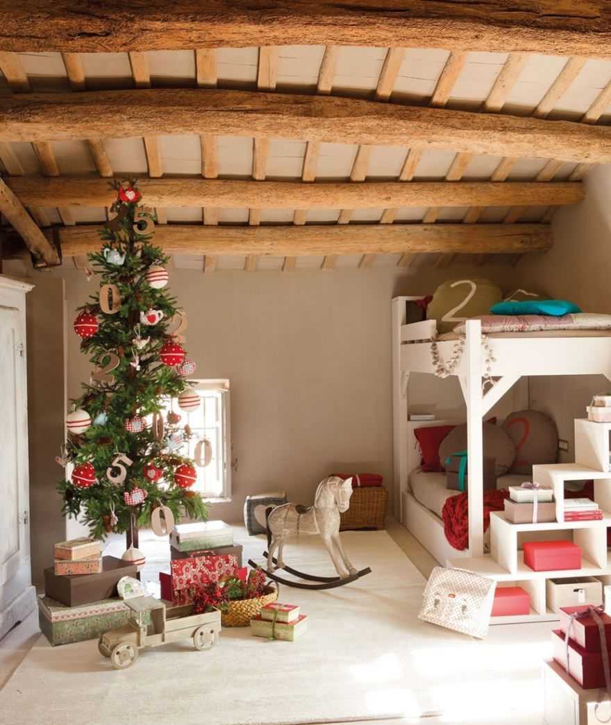 Детская комната и спальня – место, где нужно расслабиться и получить полноценный сон. Здесь не просто должно быть красиво, но еще и спокойно. Не рекомендуется перегружать интерьер слишком яркими и вычурными украшениями. Для будуара подойдут свечи, а для детской комнаты светодиодная лента. Можно разместить несколько фигурок в новогоднем стиле. Ключевая тема – праздничный минимализм.