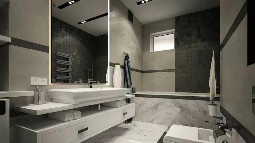 - Минимум декора в отделке помещения. Однотонные элементы облицовки без узоров, орнаментов, рисунков, фактурного тиснения и шероховатых текстур – лучший вариант оформления стен ванной. При покрытии стен плиткой стоит выбрать крупноформатные панели из керамогранита с целью минимизации заметных швов между ними.