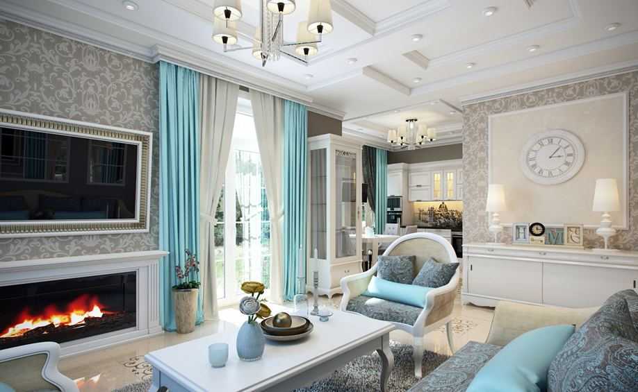 Неоклассика. Альтернативой стилю хай-тек выступает неоклассицизм, отражающий высокий социальный статус своих хозяев. В сезоне 2019-2020 будут популярны обои с металлическим блеском, флористическим рисунком и мебельные ткани с необычной фактурой. Отличным решением станет пол-мозаика из натурального камня с орнаментом в виде ковра. Шик интерьеру придадут хрустальные люстры со струящимися подвесками.