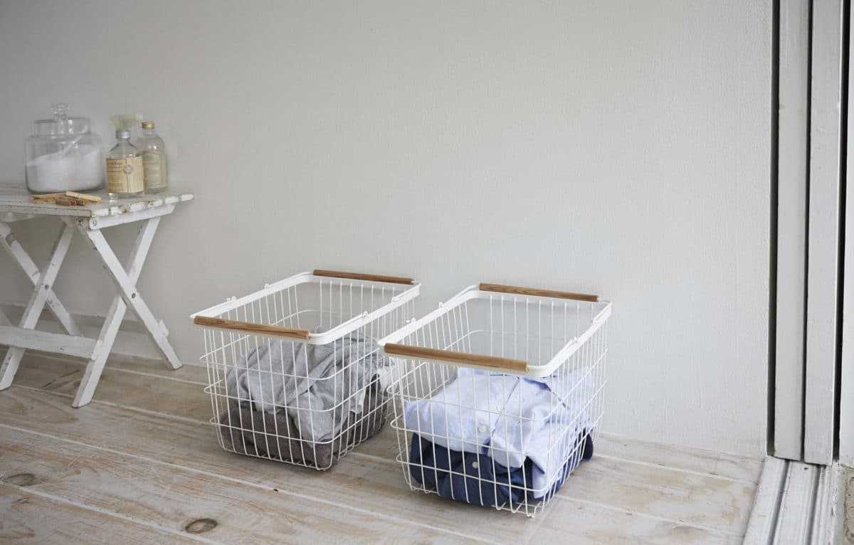 Кстати, о стирке. У многих из нас стиральные машинки стоят прямо на кухнях. Туда же мы предпочитаем ставить корзины для белья. У Yamazaki для этого атрибута есть сразу несколько идей.