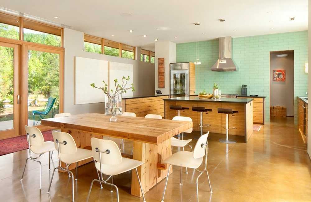 Каждый, кто хочет отдохнуть и расслабиться во время утренних процедур должен рассмотреть добавление нежного зеленого колера в оформление стен своей кухни как, например, это было выполнено в творческом проекте от инженерного бюро CTA Architects Engineers.