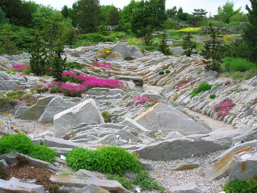 Важно не только подобрать растения, но и валуны, определив количество камней, их форму и размер. В зависимости от расположения камней альпийские горки делятся на следующие разновидности: