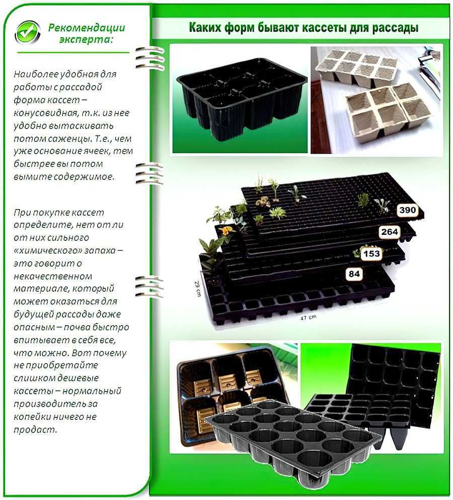 Особенности рассадных кассет во многом зависят от материала, из которого они изготовлены, а также от формы и размеров.