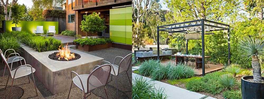 Совмещение домашних интерьеров и внешнего уюта и декора. Удобная открытая столовая и гостиные уголки, летние кухонные конструкции и небольшие внутренние дворики улучшают дизайн заднего двора или участка и добавляют функциональность садам. Барбекю или мангал, перголы или беседки во внутреннем дворе — прекрасные дополнения, увеличивающие домашний уют.
