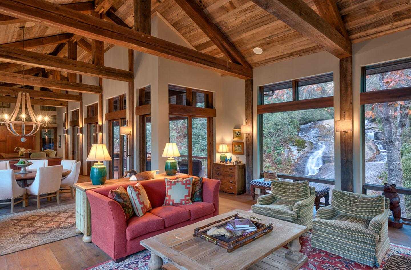Условно можно выделить два направления стиля шале: более домашний (светлое дерево, старинные фотографии и глиняная посуда) и охотничий (шкуры зверей, снаряжение для охоты, отделка из темной древесины).